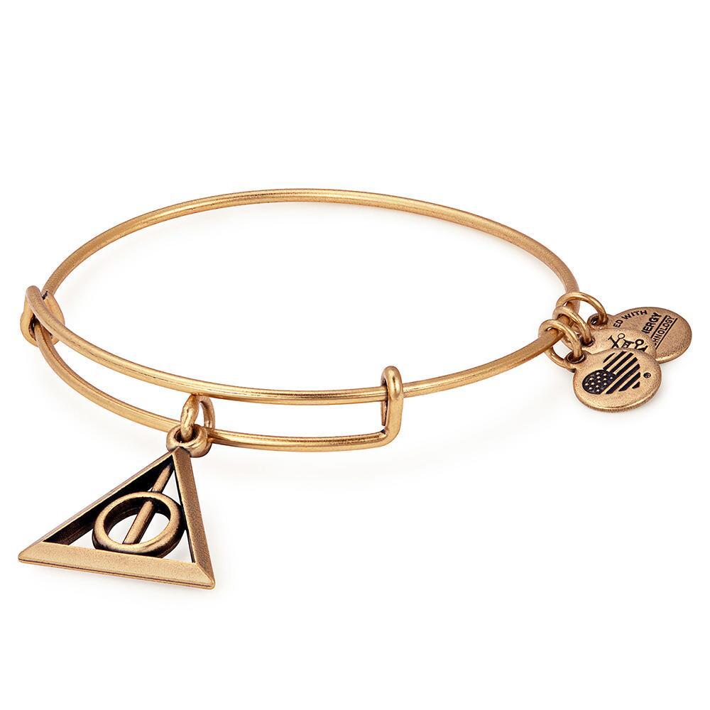 If you've joined the hunt for the Deathly Hallows, show your solidarity with this expandable wire bangle bracelet featuring a Deathly Hallows charm and shining with a Rafaelian gold finish.
