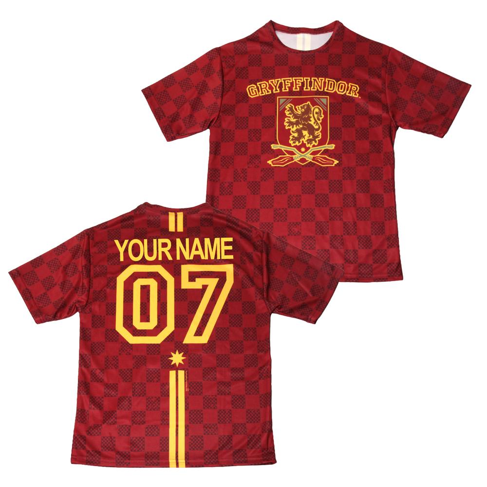 This sublimated t-shirt features a dynamic checkered pattern of the Gryffindor colors. The front of the shirt shows the Gryffindor name and crest. The back of the shirt has the number 01 or 07, along with the name that you provide. Whether you're a Seeker, a Keeper, a Beater, or a Chaser, we've got a t-shirt for you!